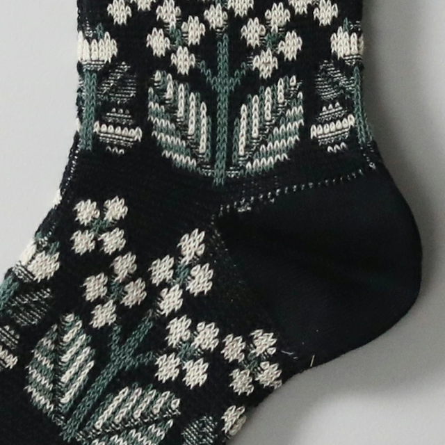 繊細な花柄が上品な雰囲気の、ジャガード編みのソックス。