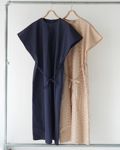 ストンとしたシルエットのワンピースは、共布リボンでウエストをキュッと絞ることでスタイルアップ効果も。すっきり見せながら、リラックス感はしっかりキープ。