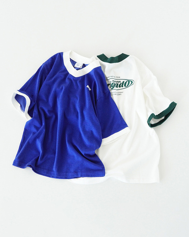 プレーティング天竺による艶やかな表面と、フットボールユニフォームを思わせるデザインが、こなれた大人のカジュアルスタイルを演出。シンプルながらも個性が光る、夏の主役になる一枚です。