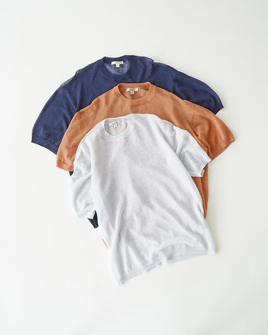 ・通気性と速乾性に優れたリネンニットは、真夏のコーデにも◎