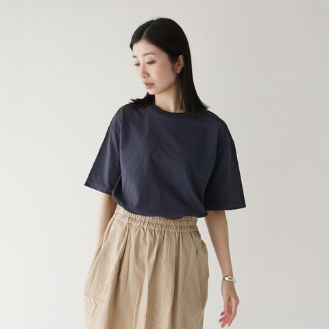 パンツにもスカートにも合わせやすく、1枚でコーデが完成。ナチュラル感と上質さが両立した、大人の夏Tシャツです。