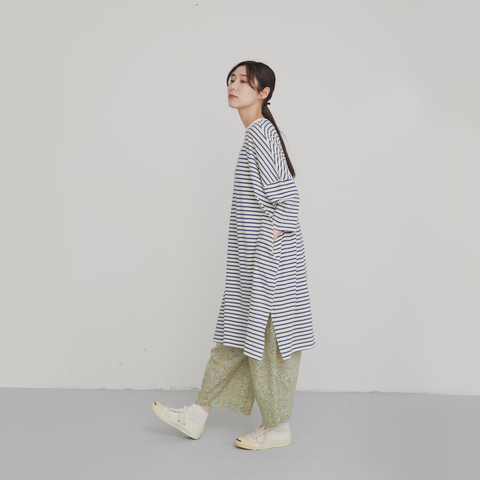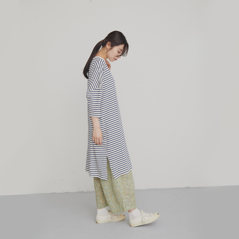 リルアンドリリーが贈る、コットンボーダーワンピースは、ただ着るだけではなく「まとう」という新しい感覚を届けてくれます。