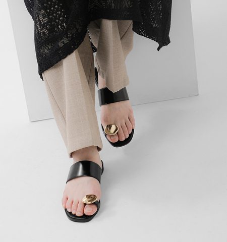 atelier brugge|レザー メタリック ヒール サンダル 25bb-31-ms