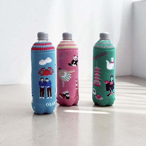 それぞれの街の個性や文化を、遊び心あふれるアイコンで表現したボトルカバーです。