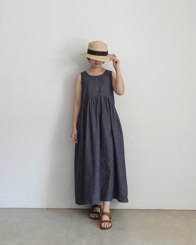 今の暑い時季は1枚で、シャツやカーデ、ジャケットとのレイヤードスタイルにシーズン通して着まわせるノースリーブワンピース。