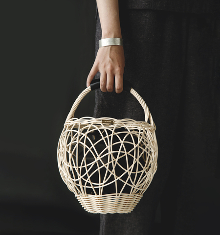 天然素材の風合いを活かし、ひとつひとつハンドクラフトによる丁寧な仕上がり。 籐を用いて乱れ編みにし、カゴに仕立てています。デザインの性質上、全く同じ模様での製作が難しく、その時々で少しずつディテールが変わります。「ひとつとして同じものがない」。そんな「一点物」の価値と魅力が、このバッグの特徴でもあります。