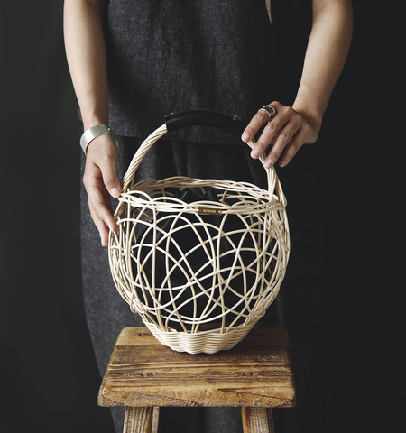 一年中カゴを使たい!という思いから、色々な組み合わせを楽しめるカゴバックが誕生しました。乱れ編みで編み上げたカゴバックは、中に入れる物によって雰囲気が変わり、様々なアレンジで楽しんでいただけます。