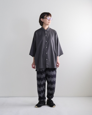 特にオーバーサイズが好きな方や、ゆったりはきたい方にご好評だったこの形を、カタカナが織元さんのもとへ足を運び、生地を選んでつくっていただきました!