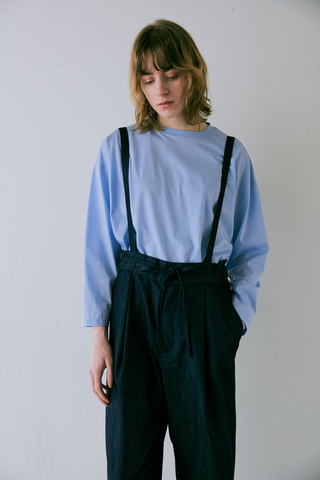 後ろ身頃のヨーク下から広がるギャザー部分には、繊細なコットン布帛素材をあしらった、異素材ドッキングのプルオーバーです。