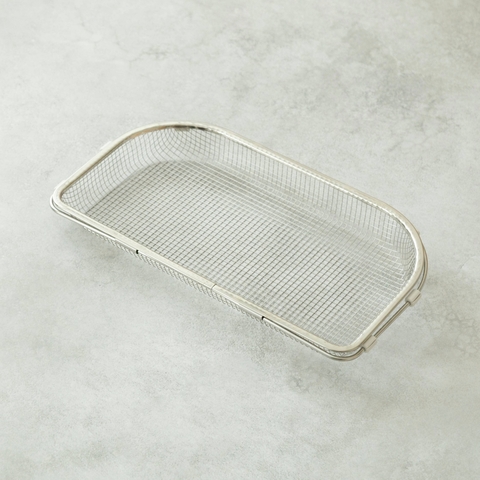 Three Snowの「D型スライドバスケット No.2」は調理スペースも洗い物スペースも邪魔しない水切りかごです。その理由はシンクに渡せることと、浅型であること。浅型だから水切りかごの下にお鍋や洗い桶を入れられるんですね。ワイヤーではなく、メッシュタイプなので汚れが目立ちにくく、水切りかご自体のお手入れも楽々です。