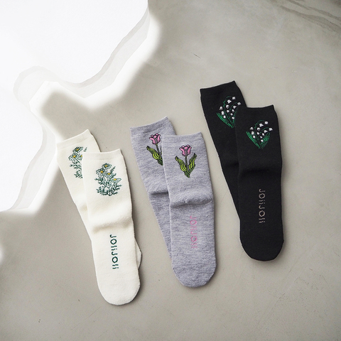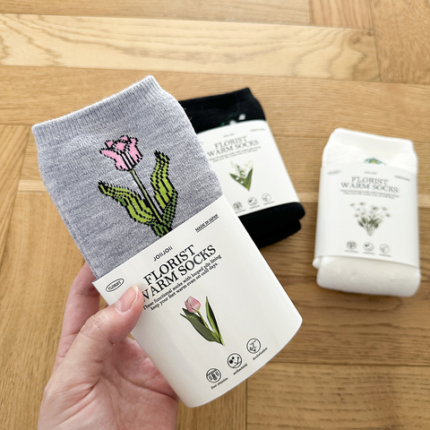 マーガレット・チューリップ・スズランのワンポントが足首の裏にちらりと見える、さりげない可愛さを楽しめるデザイン。