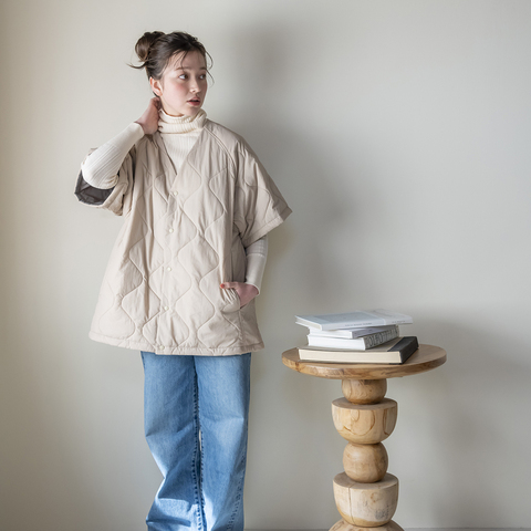 キルティング面と、キルティングなしの面、印象が異なる両面で着用できます。