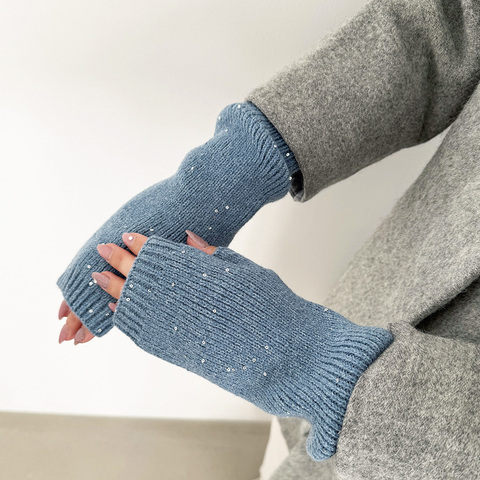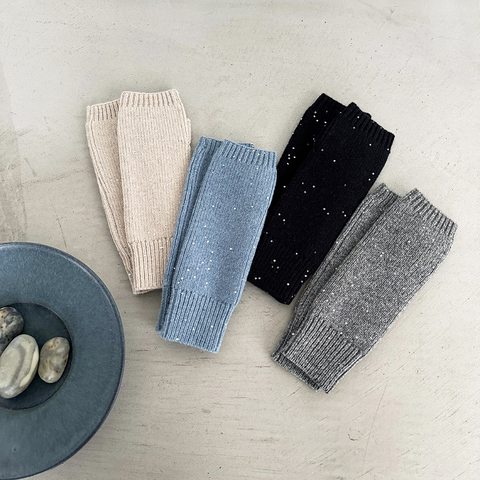 きらきらと雪が降っているような、小さなスパンコールがきらめくニットアームウォーマーです。