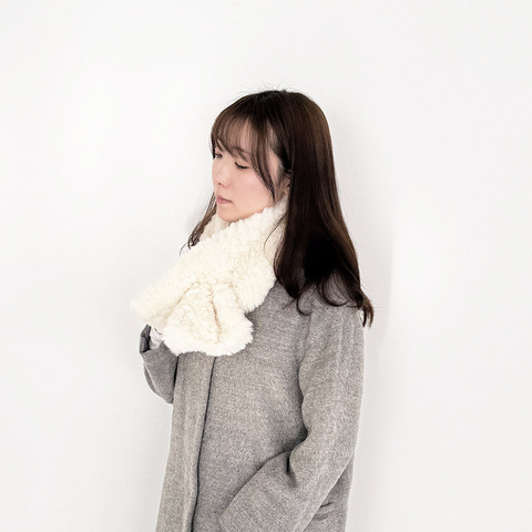 ムートンのようなもこもこのエコファーであたたかく、顔まわりに優しい雰囲気を添えてくれるティペットです。