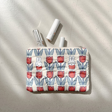 花柄プリントに心躍る♪ミッフィーキルティングフラットポーチ