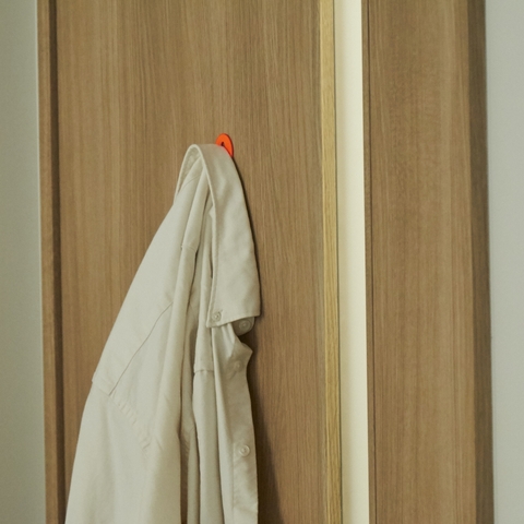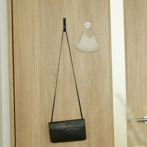 特殊な吸着シートでくっつけられる「APY/ドットフック」なら、大切なお家の壁やドアに傷をつけることなく掛ける収納を増やすことができます。