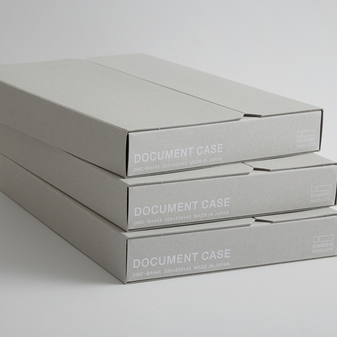 このドキュメントケースは、ステーショナリーを中心に幅広いジャンルでデザインを手掛けるYAMASAKI DESIGN WORKSの山崎宏さんがデザインし、高品質な貼り箱や化粧箱を得意とする「株式会社一新堂」が作っています。手仕事で行われる一新堂さんの細やかなものづくりを直に見て感動した山崎さんが、これまでのデザイン経験をフルに活かして考えたという一品。