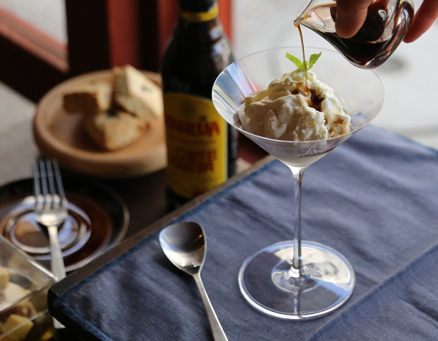 バニラアイスにコーヒーリキュールをかければ、甘さの中にほろ苦さを感じる大人デザートの出来上がりです。