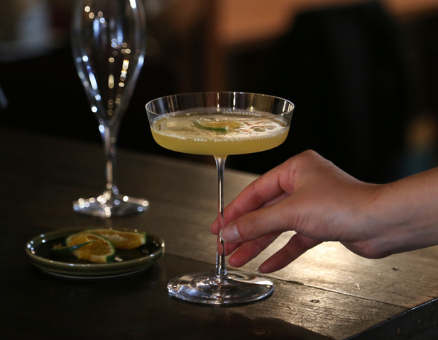背の低いカクテルグラス「エイサシリーズ」。本格的でレトロなバーのイメージからインスパイアされたクラシカルな形ですが、薄く繊細にすることで新たな表情に仕 上げられています。