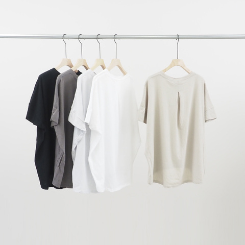 ゆるっとしたコクーンシルエットが特徴のムラ糸 タックコクーンTです。背面中央にタックを施すことで、後ろ姿にふんわりとした立体感が生まれ、シンプルながらも表情のあるデザインに。