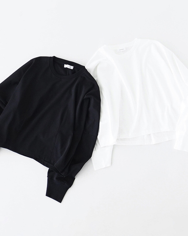 背面の切替と裾ダーツで奥行きのあるシルエットを演出したロングスリーブTシャツ。
