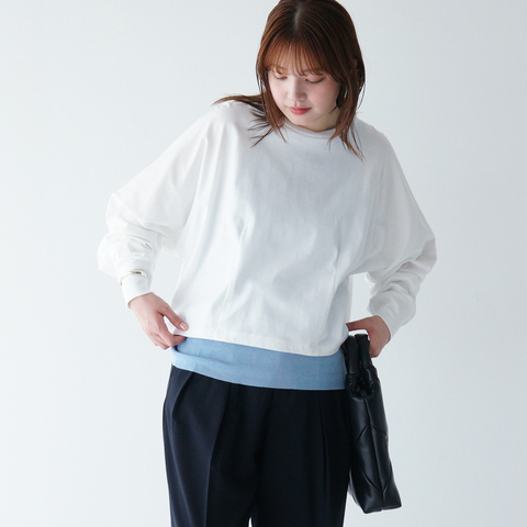 パンツにもスカートにも合わせやすく、1枚でサマになる万能トップス。大人のためのデザイン性と実用性を両立した1枚です。