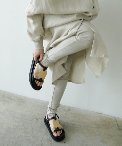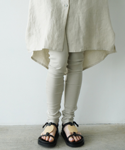 トルコ原産のオーガニックコットンを使用し、 空紡糸ならではの程よいハリとドライな質感が特徴の フライス素材で仕立てたレギンス。