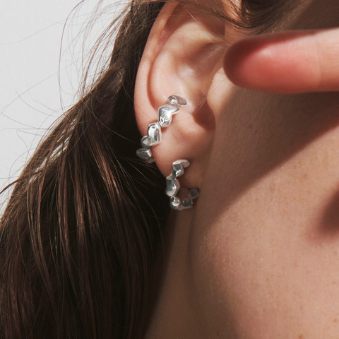 甘さを削ぎ落としたフォルムが、耳元にモードな雰囲気を宿します。