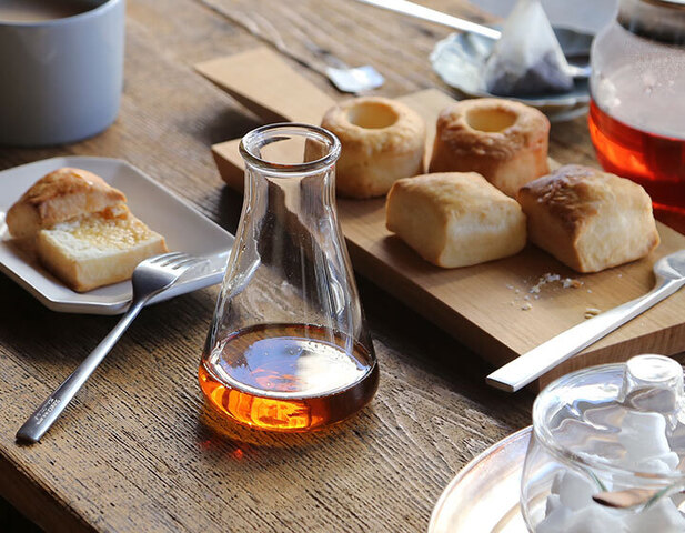 小さめのフラスコは、牛乳やシロップ、ドレッシングを入れるピッチャーにぴったり。小さなカトラリースタンドとして使うこともでき、ティースプーンやピックの収納に便利です。