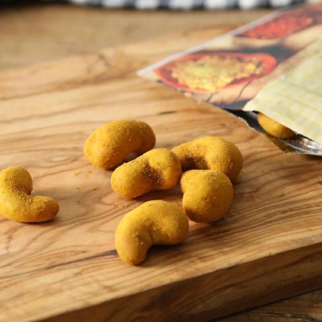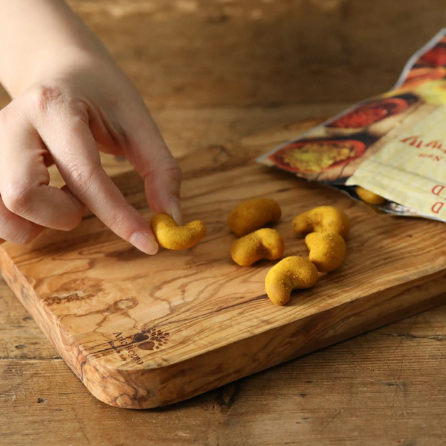カシューナッツのカリッと軽い歯ざわりは、スパイシーな風味とともに、ビール等のお供にぴったり。