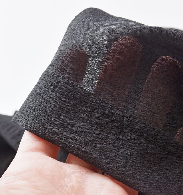濃色は濡れた状態での摩擦による移染することがあります。アイロンはあて布を使用してください。洗濯で若干縮みます。洗濯はネットにいれて軽く脱水をして形を整えて干してください。