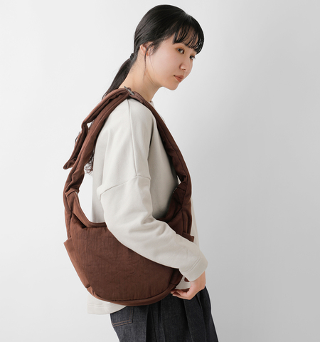 中綿入りで、ミリタリー感がありつつ、上質でラグジュアリーな雰囲気をプラスしたショルダーバッグです。他にはない柔らかさとふっくらとした厚みを持った素材が特徴です。