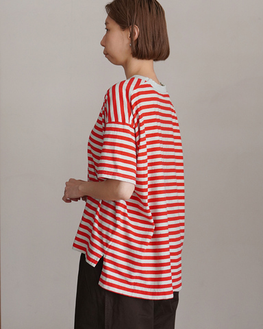 pritオリジナル生地で表現したボーダー柄が、夏のコーデに彩りをプラス。ワイドシルエットとドロップショルダーの組み合わせがリラックスした着こなしをつくり、前後差のある丈感がさりげないこなれ感を演出します。