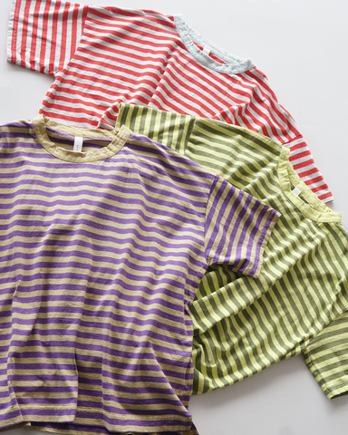 「 リサイクルコットン 5分袖 ボーダー夏Tシャツ 」