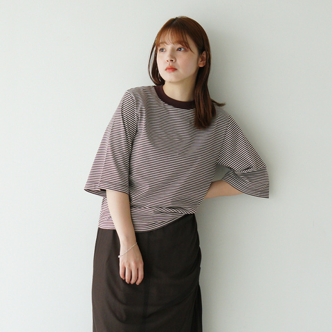 どんな日にも頼れる、上品カジュアルな五分袖Tシャツ。コンパクトな身頃に程よく広がるベルスリーブが女性らしい柔らかな印象をプラス。