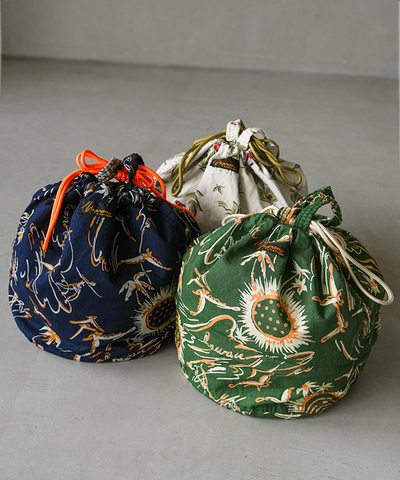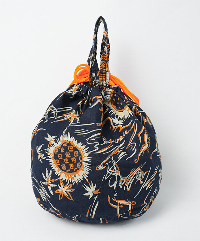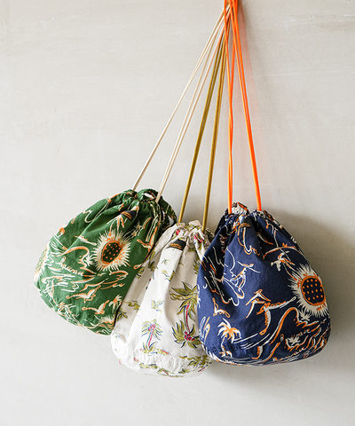 ・ヴィンテージのアロハ柄からインスパイアされた夏らしい巾着バッグ。