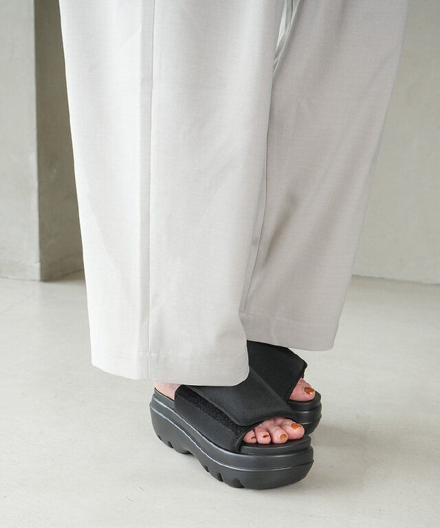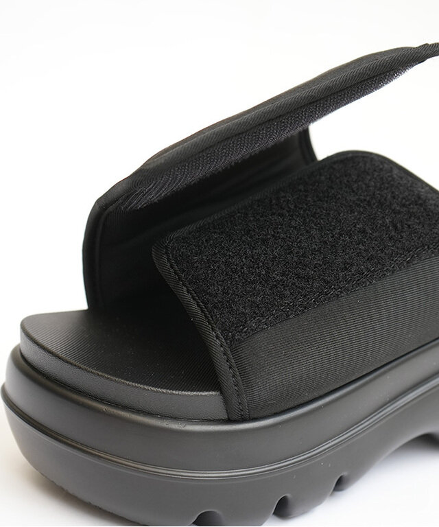 ・甲部分をすっぽりと覆う太幅のワンストラップはベルクロで調整可能でフットベッドもクッション性抜群と、厚底スニーカー感覚で履くことができます。