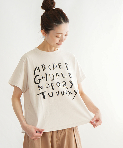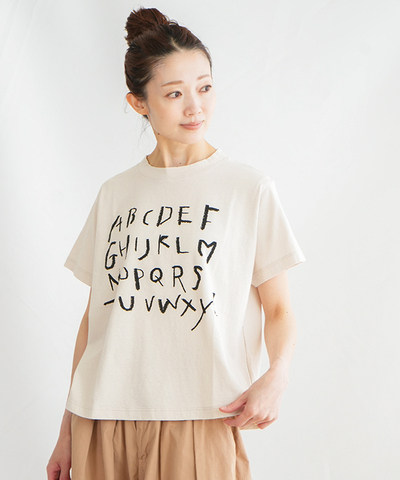 tumugu|ラフィ天竺7分袖プリントTシャツ(better together) レディース トップス ロゴTシャツ カットソー 半袖 英字 ロゴプリント tc25304