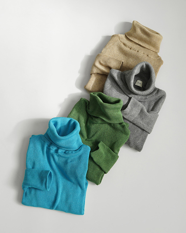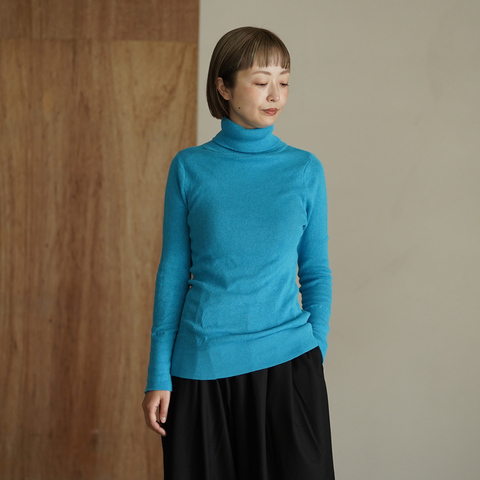 ターコイズカラーはCROUKAだけの別注色です。トップスのインナーとして、タートルを首元から覗かせれば、レイヤードならではのさりげないアクセントも楽しめます。