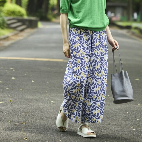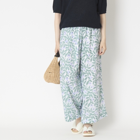 花柄のパンツは、たっぷりと生地を使っているワイド型です。風通しがよく、パンツの裾から風が通るのを実感できると思います。