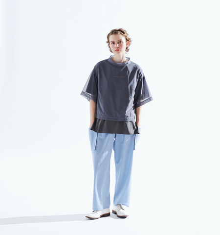 モックネックシルエットのシアートップスは身幅と袖幅を広げることで、様々なアイテムにレイヤードしやすくしています。