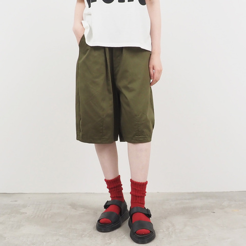ひざあたりに入ったタックが立体感を生み出し、ゆったりとしたシルエットながらも野暮ったく見えないデザインに仕上げました。