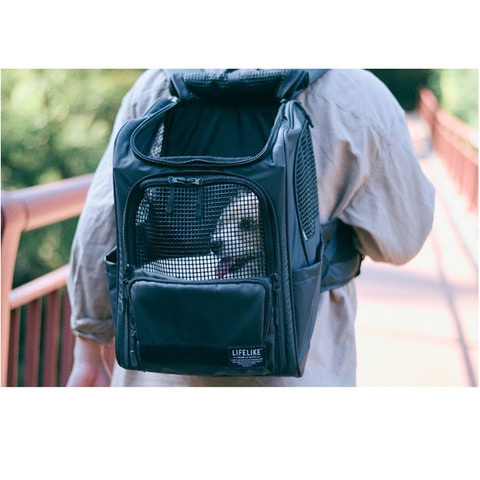 - ユニセックスなデザインが使いやすい、スタイリッシュなバックパック型ペットキャリー。<br>底面と裏面には消臭機能素材を採用。<br>程よくマットでツヤのある素材とシンプルなデザインで、長くお使いいただけます。<br><br>・上部の内側にはワンちゃんの様子が確認できるメッシュ蓋をデザイン。<br>二重蓋構造になっているので、シーンによって使い分けることができます。<br><br>・正面の入口は下まで大きく開けることが可能。<br>ウォークインで出入りすることができます。<br><br>・正面部分にもメッシュ窓との二重構造を採用。<br>中にいながら外の様子が確認できるので、ワンちゃんも安心です。<br><br>・取り外し可能な飛び出し防止のリード付き。<br>元気なワンちゃんも安心してキャリーでのお出かけを楽しむことができます。<br><br>・程よくマットな、ツヤのあるターポリン素材を使用。<br>汚れにくく耐久性があり、お手入れが簡単!<br>消臭機能付きの裏地と合わせて、清潔で快適にお使いいただけます。<br><br>・底面にも裏地と同じく消臭機能の付いたポリエステル生地を使用。<br>ベルクロで取り外すことができ、単体でしっかりとお手入れすることができます。<br><br>・底面には耐久性に優れた幅広の底鋲付き。<br>地面に置いた時の安定性を保ちます。<br><br>・背面にはトイレシートなど、平らな物を収納できるポケットがついています。<br><br>・ベルクロで簡単に取り外せるブランドロゴワッペン付き。<br>自分のお気に入りのワッペンを付けてアレンジも楽しめます。<br><br>■LIFELIKE(ライフライク)とは<br>~AWESOME LIFE FOR PETS~<br>ペットにとって素晴らしい生活をコンセプトに、トレンド・機能性・楽しさを兼ね備えたラインナップが魅力の犬用品ブランドです。