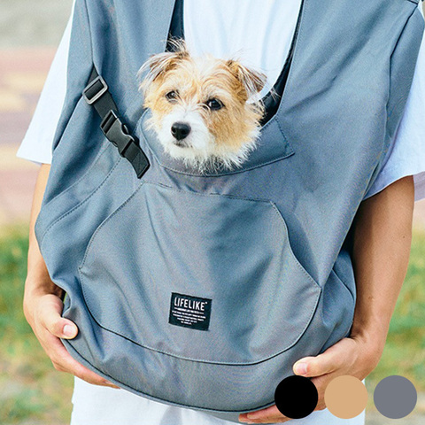 耐荷重10kg対応の、ビッグサイズの前抱きタイプのペットスリング。<br>底板付きで安定感があり、大きなワンちゃんが出入りしやすい機能的デザイン。<br>ベーシックな色味とシンプルなデザインで、長くお使いいただけます。<br><br>・正面のファスナーを使って、入口を大きく広げることが可能。<br>体の大きなワンちゃんも出入りしやすいデザインです。<br><br>・正面にデザインされた大判のカンガルーポケットが便利。<br>携帯電話やお財布をさっと取り出すことができます。<br><br>・パット入りの幅広ストラップで、長時間の使用でも肩が傷みにくい設計に。<br>長さ調節可能で、オーナーそれぞれの体格に合ったフィット感でお使いいただけます。<br><br>・底面には飛びだし防止のリード付き。<br>元気なワンちゃんも安心してスリングでの抱っこを楽しめます。<br><br>・底板付きで安定感抜群。<br>ワンちゃんも安心してスリング抱っこを楽しめます。<br><br>・耐久性・防水性・軽量性に優れたポリエステル生地を使用。<br>汚れてもすぐにお手入れできるので、長く清潔にお使いいただけます。<br><br>・正面のシンプルな織ネームがアクセントに。<br><br>■LIFELIKE(ライフライク)とは<br>~AWESOME LIFE FOR PETS~<br>ペットにとって素晴らしい生活をコンセプトに、トレンド・機能性・楽しさを兼ね備えたラインナップが魅力の犬用品ブランドです。