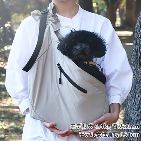 コンパクトに折りたたんで簡単に持ち運べる「パッカブル機能」の付いたペットスリング。