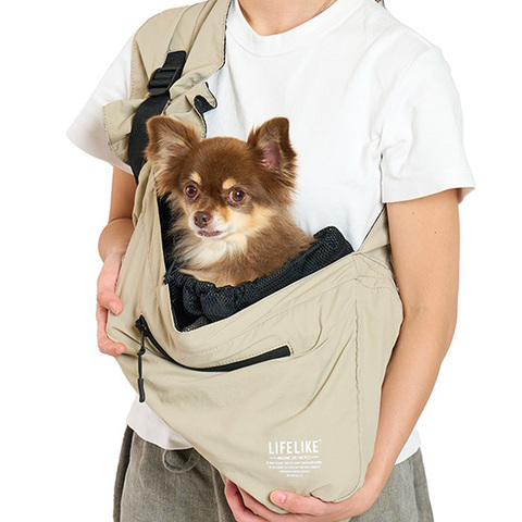 - コンパクトに折りたたんで簡単に持ち運べる「パッカブル機能」の付いたペットスリング。<br>スタイリッシュな見た目がおしゃれ。<br>荷物の邪魔にならないので、旅行先にも携帯しやすく便利です。<br>スマートなサイズ感で、予備スリングとしてもお勧めです。<br><br>・耐久性&耐水性<br>アウトドア用品に多く使われる「リップストップ生地」を使用。<br>耐久性、耐水性に優れているのでお手入れが簡単。<br>長く清潔にお使いいただけます。<br><br>・コンパクト収納<br>折りたためばコンパクトに。<br>カラビナ付きでお散歩バッグやベルトホルダーにも簡単に装着することができます。<br>旅行やアウトドアへの携帯におすすめです。<br><br>・メッシュ蓋<br>巾着ロデザインのメッシュ蓋が付いているので、顔出し厳禁の交通機関などでも使用可能。<br>メッシュ素材は通気性もよく、飼い主さんのお顔も見えるので、ワンちゃんもリラックスしてスリング抱っこを楽しめます。<br><br>・長さ調節可<br>ショルダーベルトに付いたアジャスター機能で、長さ調節が簡単。<br>服装や使用するご家族によって、肩ストラップの長さを調整することができます。<br><br>・飛び出し防止リード<br>取り外し可能な飛び出し防止のリード付き。<br>元気なワンちゃんも安心してスリングでの抱っこを楽しめます。<br><br>・シンプルなデザイン<br>白地でプリントされたシンプルなロゴをスリング全体のアクセントに。<br>スッキリとした飽きのこないデザインで、長くお使いいただけます。<br><br>■LIFELIKE(ライフライク)とは<br>~AWESOME LIFE FOR PETS~<br>ペットにとって素晴らしい生活をコンセプトに、トレンド・機能性・楽しさを兼ね備えたラインナップが魅力の犬用品ブランドです。