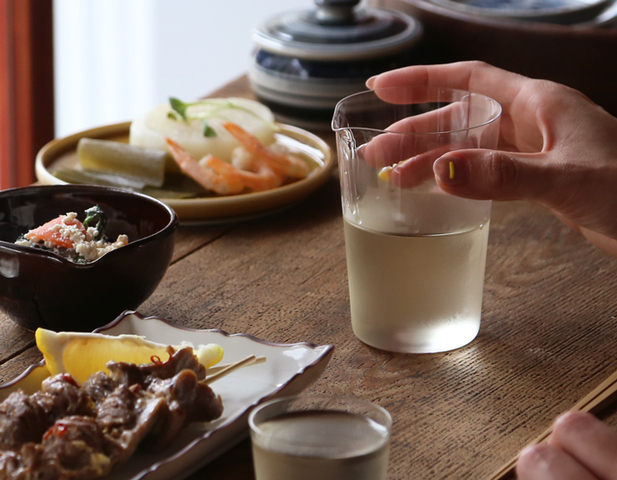 ひんやり冷えたお酒を入れると本当に美味しそうに見えます。気軽に使える片口ながら、ガラスの薄さ・形・透明感は素晴らしく凛とした美しい佇まいがあります。