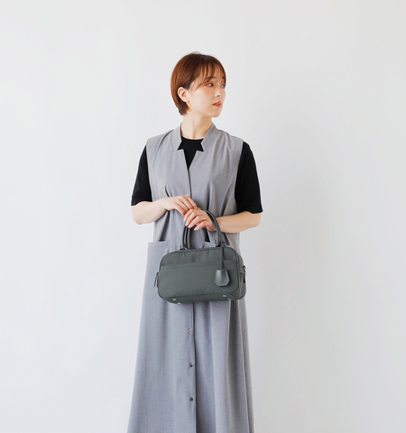 撥水加工を施した高密度ポリエステルと牛革を組み合わせた、おでかけにぴったりなボストンバッグ。前後に大きなファスナーポケットを配置。中にもジップポケット、オープンポケット付きで実用性に優れたデザインです。