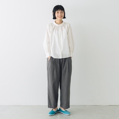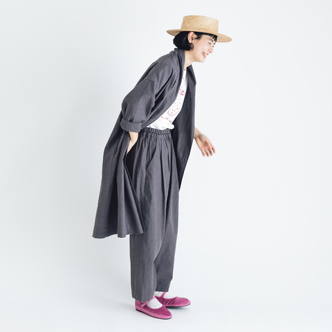 気兼ねなく履けて、気兼ねなく洗えるって春夏のパンツの基本!楽で履きやすく、しかもかわいいパンツができました。同素材で作った『くらすこと リネンコットンのローブコート』と合わせると、おしゃれなセットアップコーデが完成します。