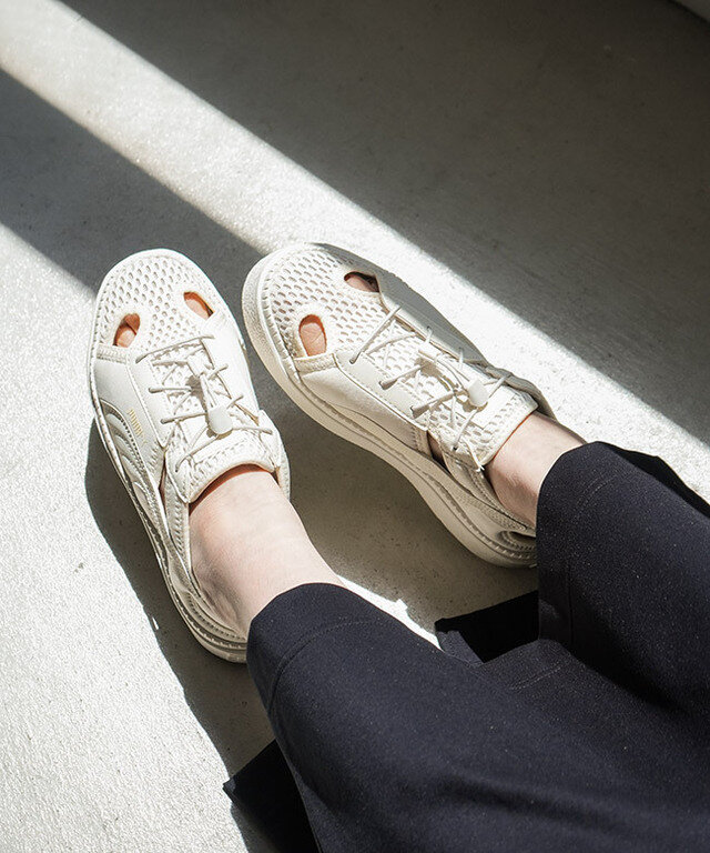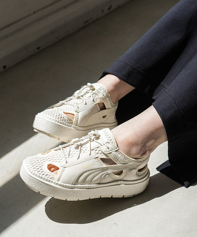 ・長年愛されるバスケットシリーズをベースに、プラットフォームトレースのデザインを活かしたライトミュールスニーカーです。